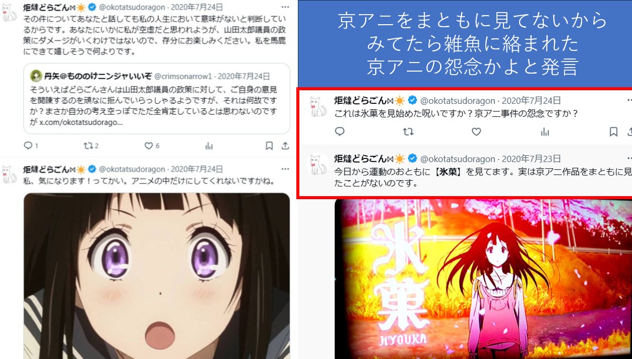 京アニ事件を当時リアルタイムで山田太郎応援に利用。