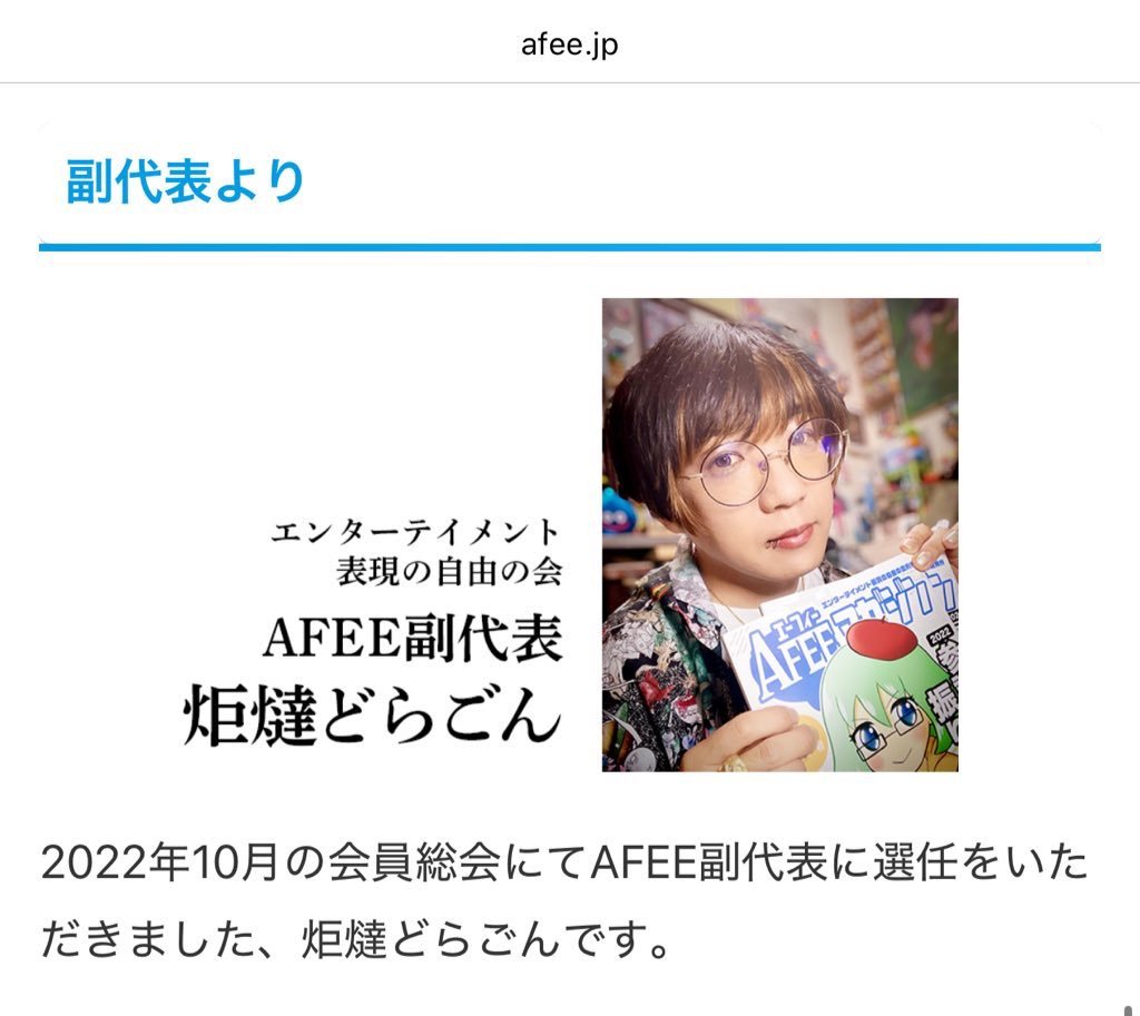 表現の自由の会(AFEE)の副代表『炬燵どらごん』