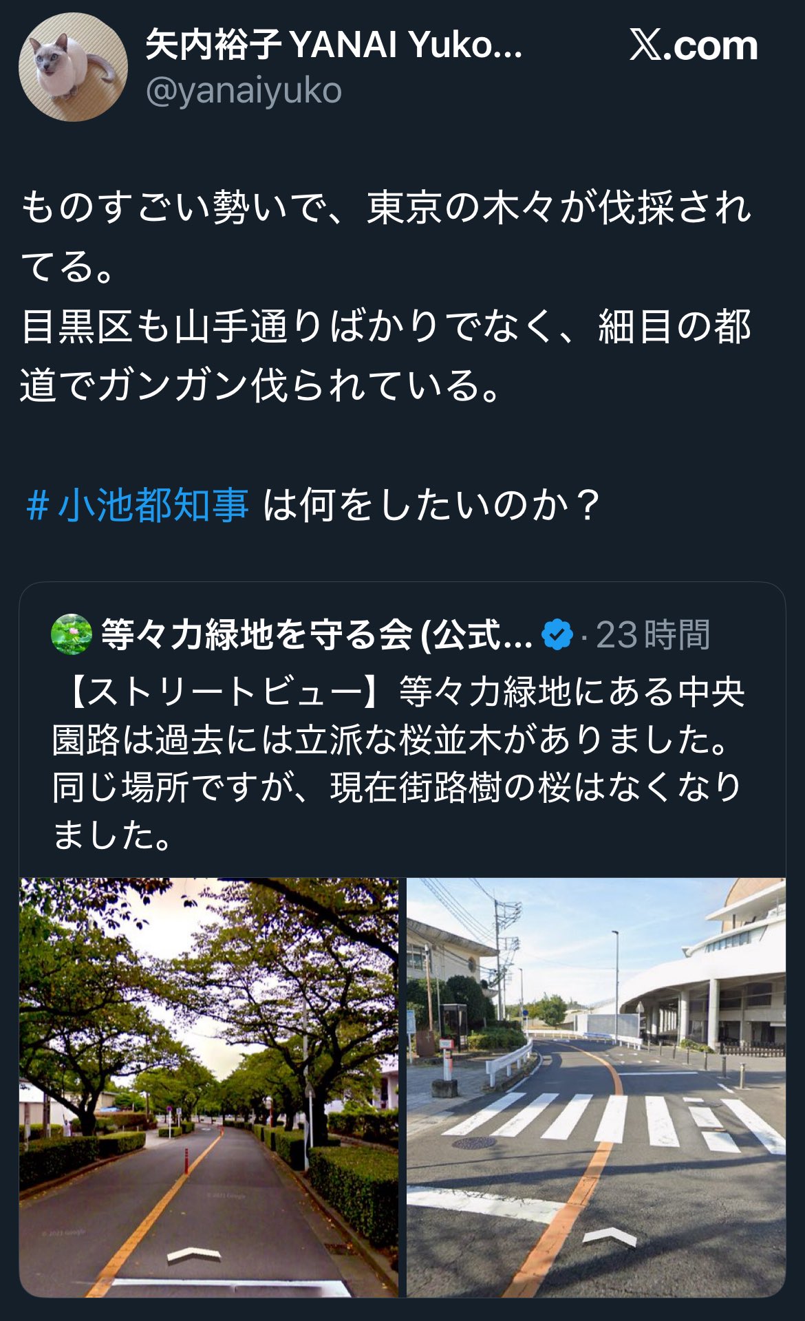 データと一緒に再投稿したく、街路樹に関する先のツイートを消します。