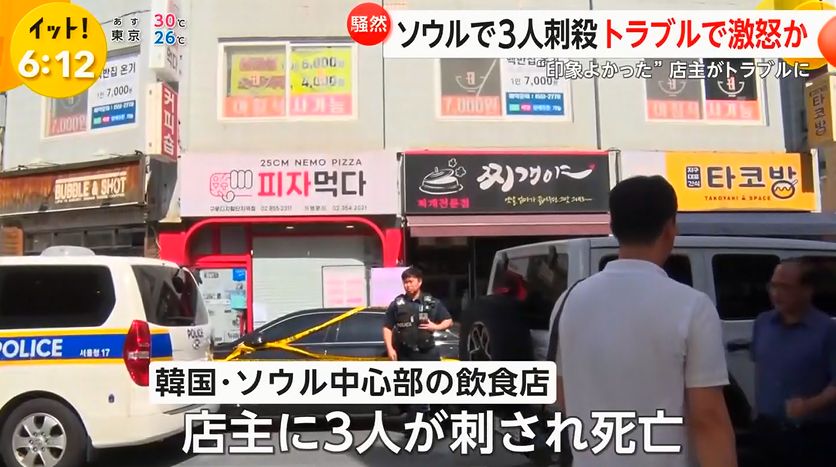 3日午前11時前、ソウル中心部の冠岳(クァナク)区の飲食店から「助けて下さい。刃物で刺されました」と通報がありました。