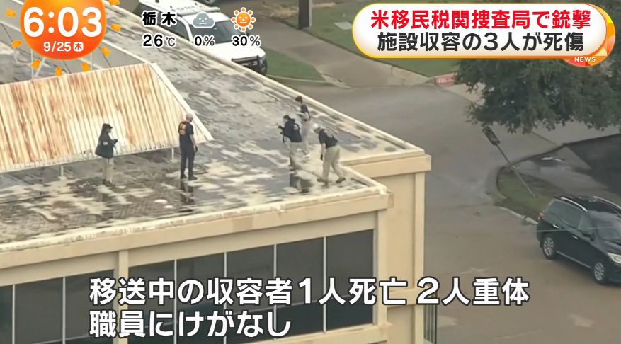 テキサス州ダラスで24日早朝、ICEの収容施設に向かって、隣接する建物から容疑者が銃を発砲しました。