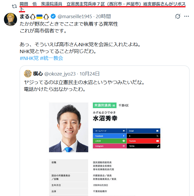 — 岡田 悟 衆議院議員 立憲民主党兵庫7区(西宮市・芦屋市)総支部長 (@occupy012123) October 25, 2025