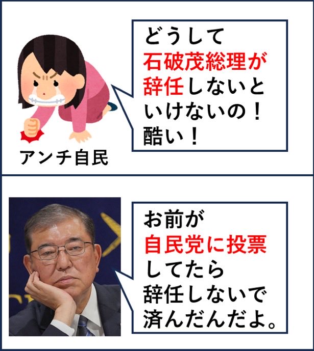 石破は国政選挙で二度惨敗。辞めるには十分すぎる理由だよ。