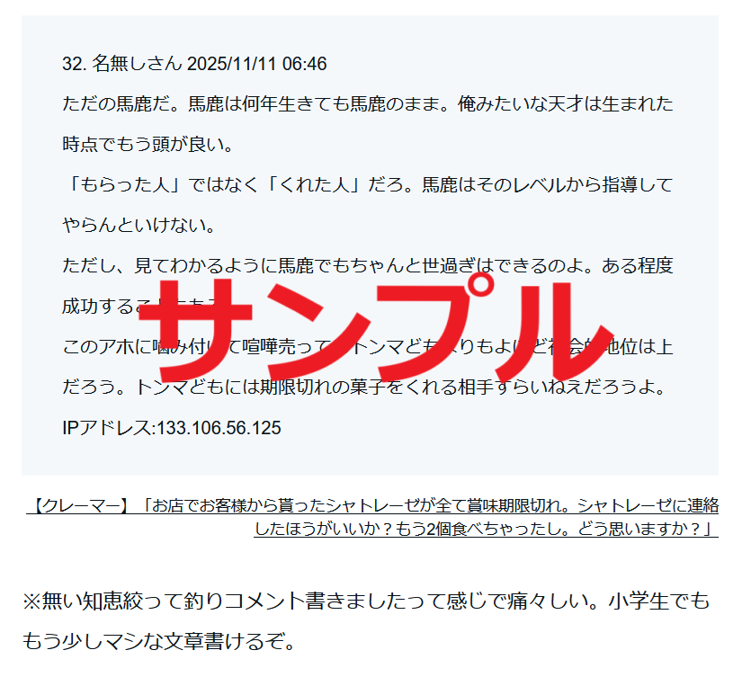 note「荒らしコメント」11月分の販売開始しました。
