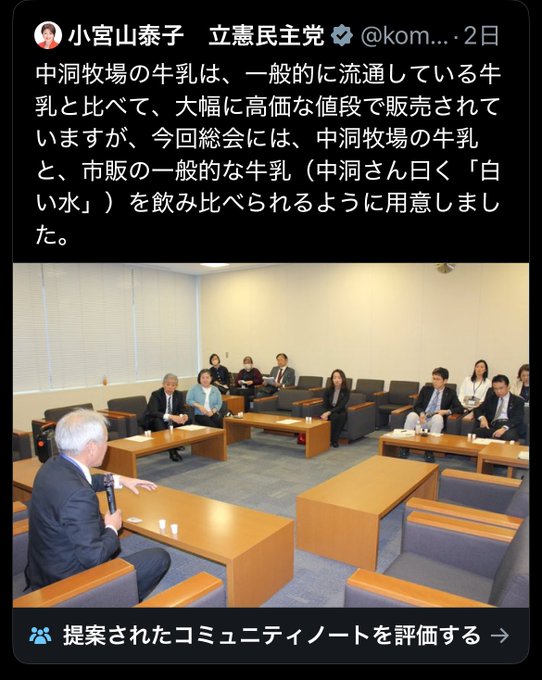 【訂正再送申し上げます。】中洞牧場の牛乳は、一般的に流通している牛乳と比べて、大幅に高価な値段で販売されていますが、今回総会には、中洞牧場の牛乳と、一般的な牛乳を飲み比べられるように用意しました。いずれも美味しく試飲いたしました。 pic.twitter.com/lH3SL7LlpA