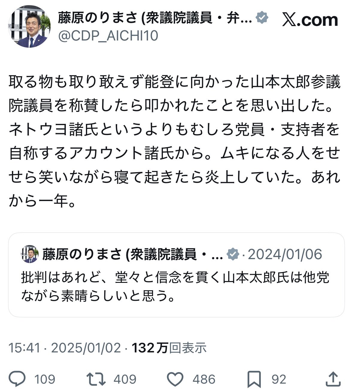 — 藤原のりまさ(衆議院議員・弁護士) 愛知10区 (@CDP_AICHI10) December 11, 2025