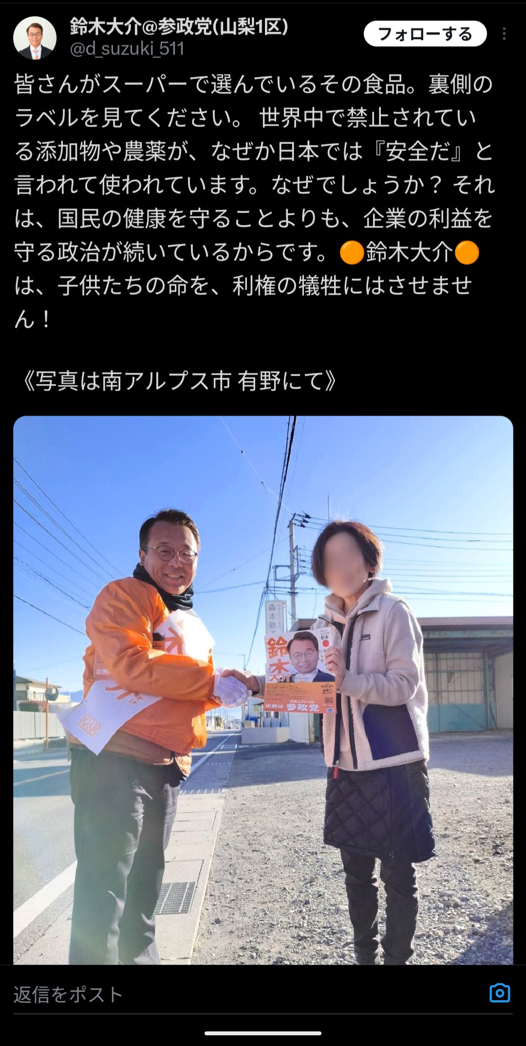 — 鈴木大介@参政党(山梨1区) (@d_suzuki_511) February 3, 2026