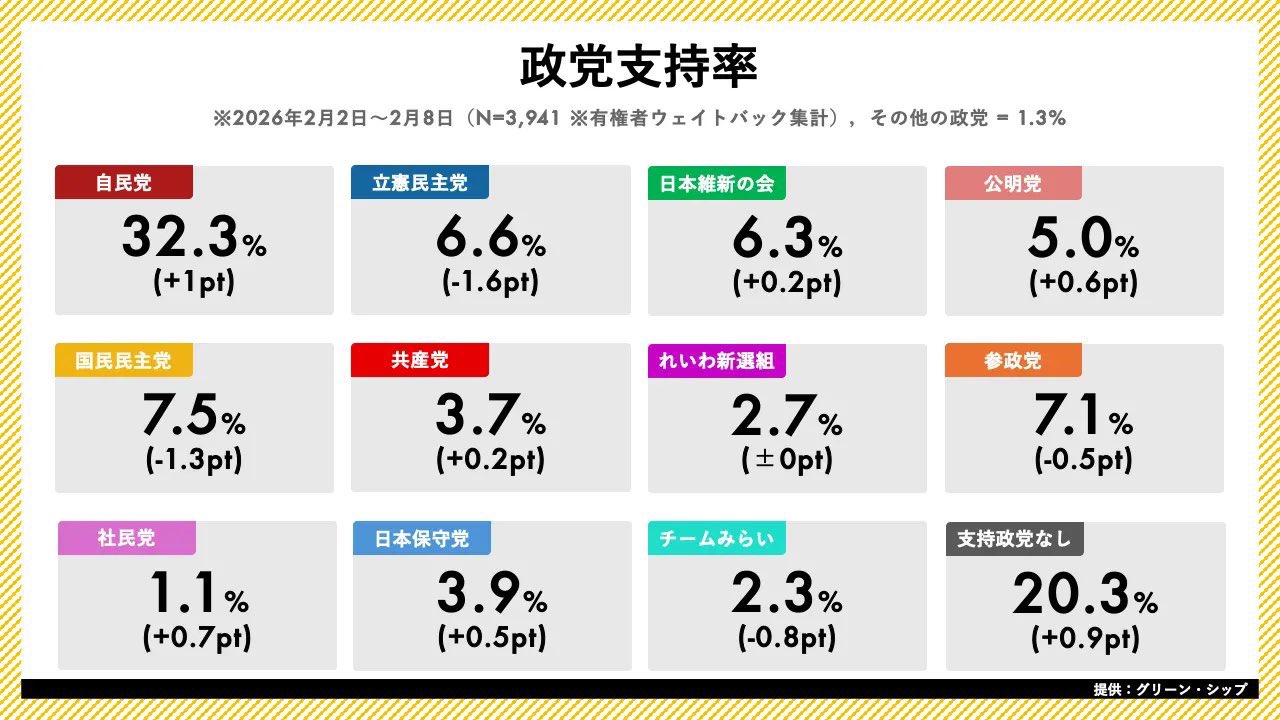 【悲報】衆院選で11議席も取ったチームみらいさん、直近の政党支持率が下から2番目ということが判明… pic.twitter.com/73N9NiCu6O